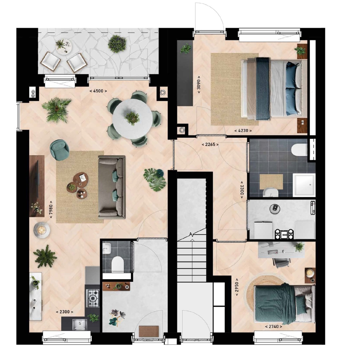 71 m² oppervlakte 2 slaapkamers
