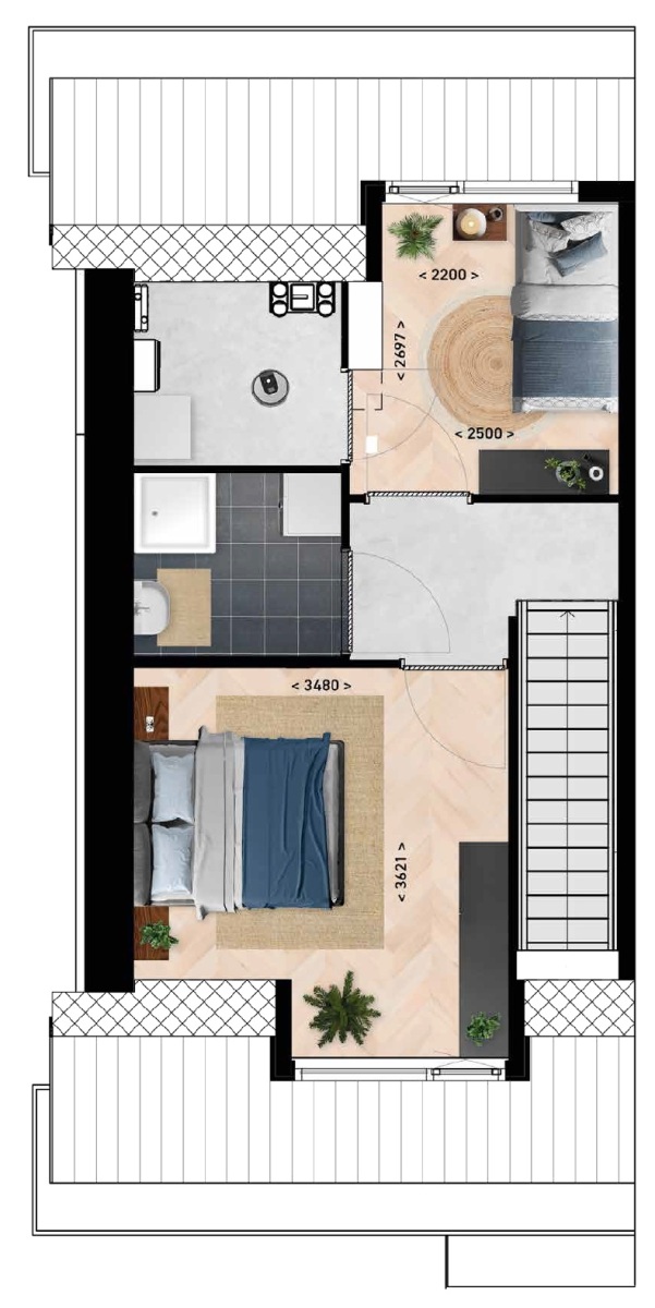 69 m² oppervlakte 2 slaapkamers