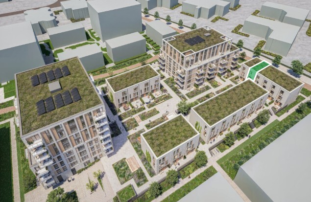 De 45 appartementen en 19 stadswoningen komen rond een prachtige, groene daktuin. De stadswoningen met 4 of 5 slaapkamers zijn circa 113 of 148 m2 groot. De appartementen met 1, 2 of 3 slaapkamers hebben oppervlaktes van circa 53 tot wel 87 m².