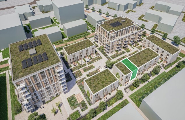 De 45 appartementen en 19 stadswoningen komen rond een prachtige, groene daktuin. De stadswoningen met 4 of 5 slaapkamers zijn circa 113 of 148 m2 groot. De appartementen met 1, 2 of 3 slaapkamers hebben oppervlaktes van circa 53 tot wel 87 m².