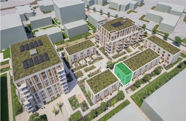 De 45 appartementen en 19 stadswoningen komen rond een prachtige, groene daktuin. De stadswoningen met 4 of 5 slaapkamers zijn circa 113 of 148 m2 groot. De appartementen met 1, 2 of 3 slaapkamers hebben oppervlaktes van circa 53 tot wel 87 m².