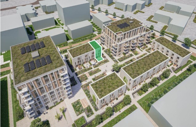 De 45 appartementen en 19 stadswoningen komen rond een prachtige, groene daktuin. De stadswoningen met 4 of 5 slaapkamers zijn circa 113 of 148 m2 groot. De appartementen met 1, 2 of 3 slaapkamers hebben oppervlaktes van circa 53 tot wel 87 m².