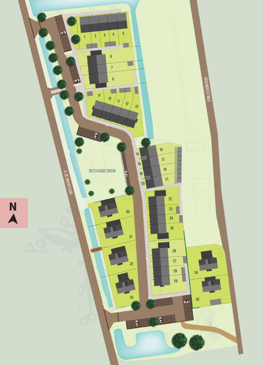 De 35 woningen van Wouw! worden gebouwd aan de rand van de Woudwetering, tussen de A. de Graaflaan en de Vrouwgeestweg. Benieuwd naar wat Wouw! je te bieden heeft? We zetten de pluspunten voor je op een rijtje: